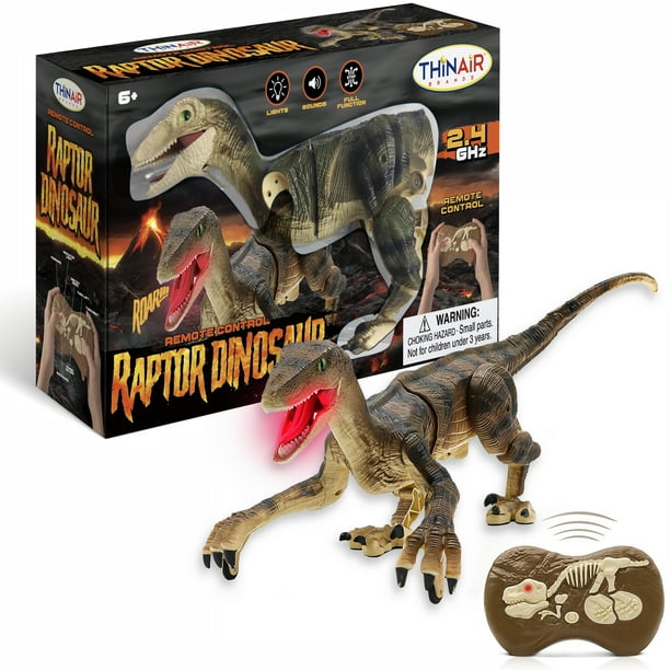 Thin Air Toys Rc Dinosaur Toy 18 Inch Velociraptor Lights Up Roars Walks Forward Back Left Right Has Built In Rechargeable Battery For 1 Full Hour Of Play Includes Controller Usb Cable